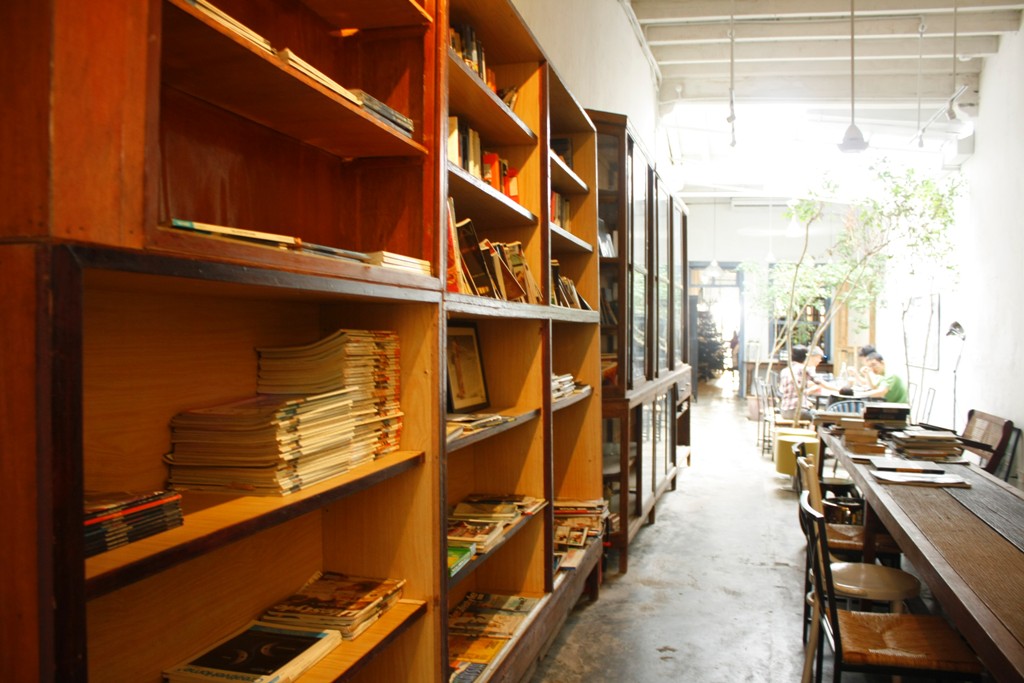 Next, it comes to a reading area with long table and bench. Plenty of reading materials on the shelf, you can really spend your whole day here.